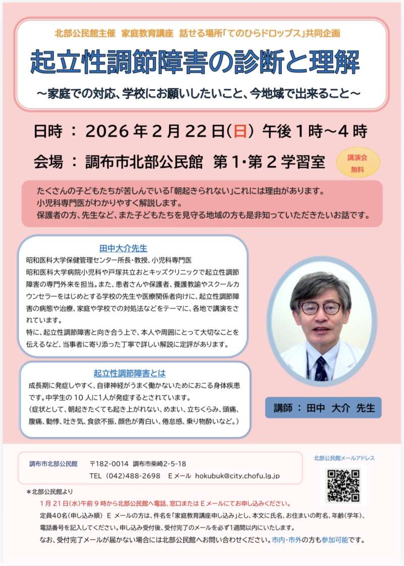 中学生の10人に1人が発症するとされています。(症状として、朝起きたくても起き上がれない、めまい、立ちくらみ、頭痛、腹痛、動悸、吐き気、食欲不振、顔色が青白い、倦怠感、乗り物酔いなど。)