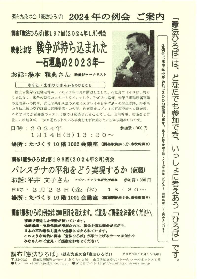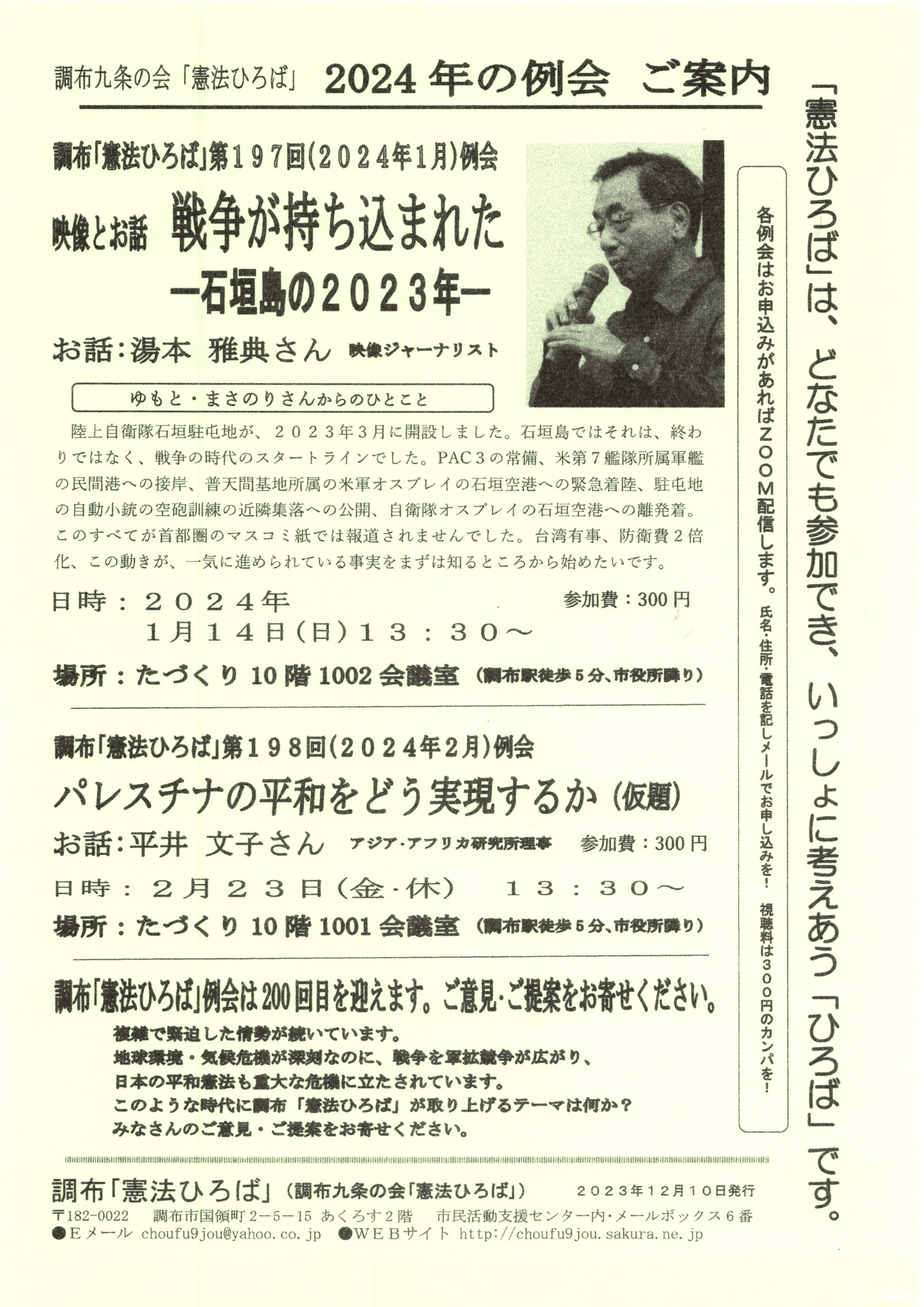 | 主催 | 調布「憲法ひろば」(調布九条の会「憲法ひろば」) |