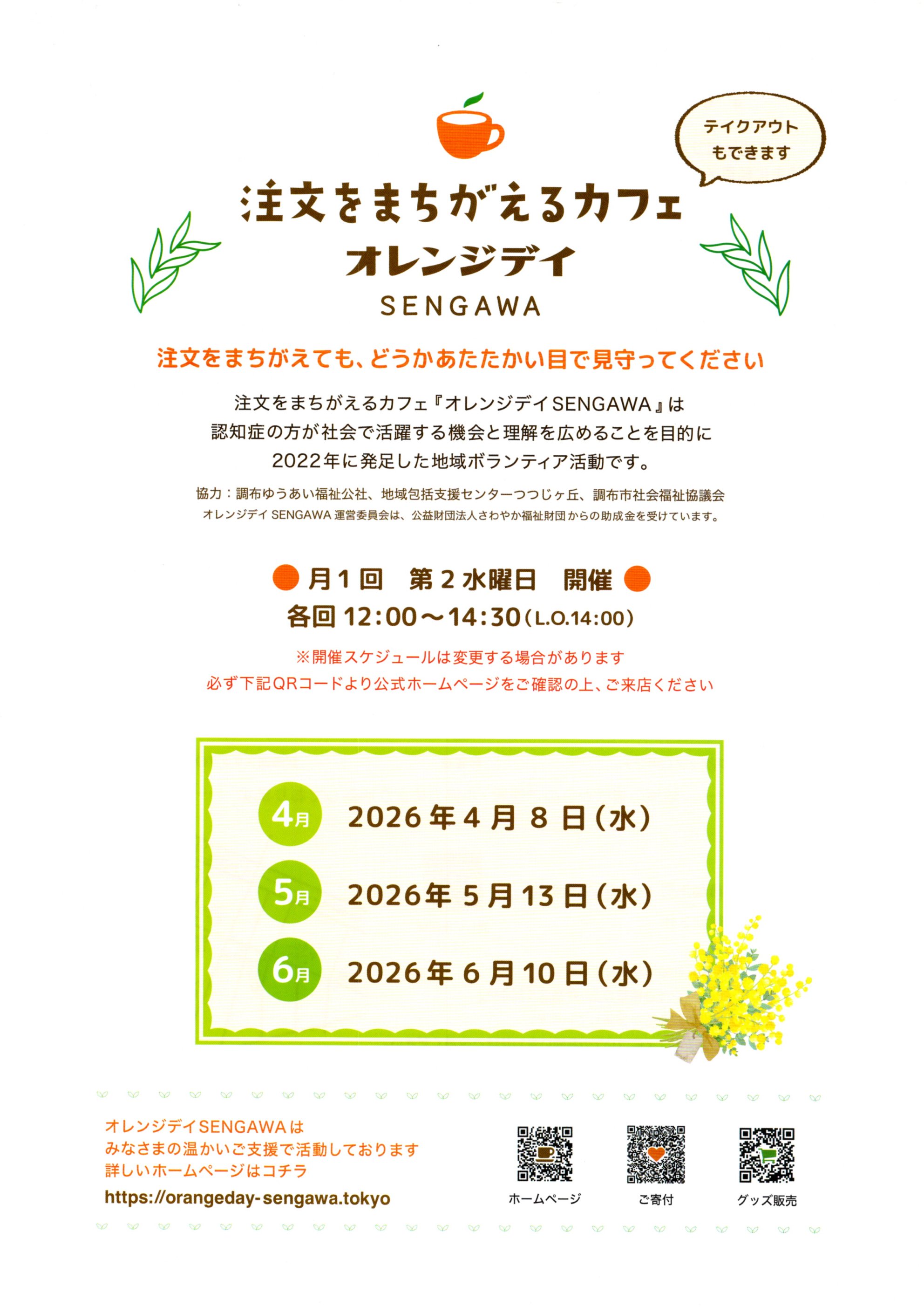 オレンジデイSENGAWA運営委員会は、公益財団法人さわやか福祉財団、コープみらい財団「コープみらい・くらしと地域づくり助成事業」からの助成金をうけた「地域ボランティア活動」です