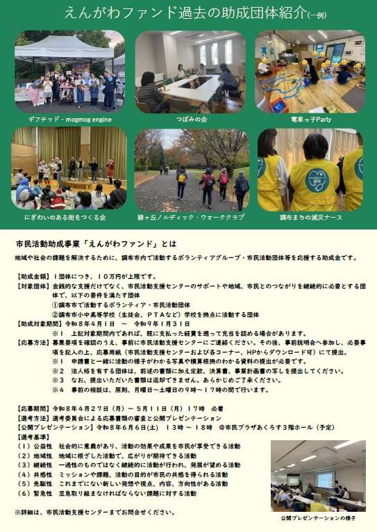 市民活動助成事業「えんがわファンド」令和8年度募集につきまして
